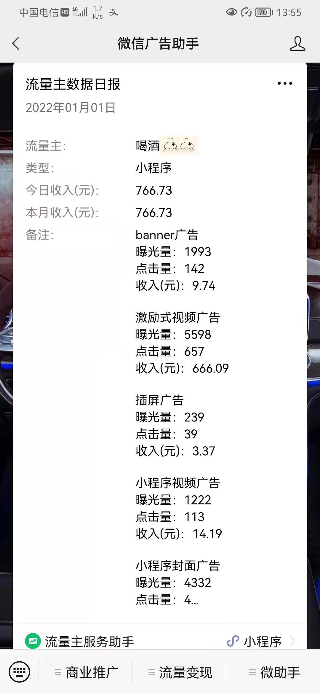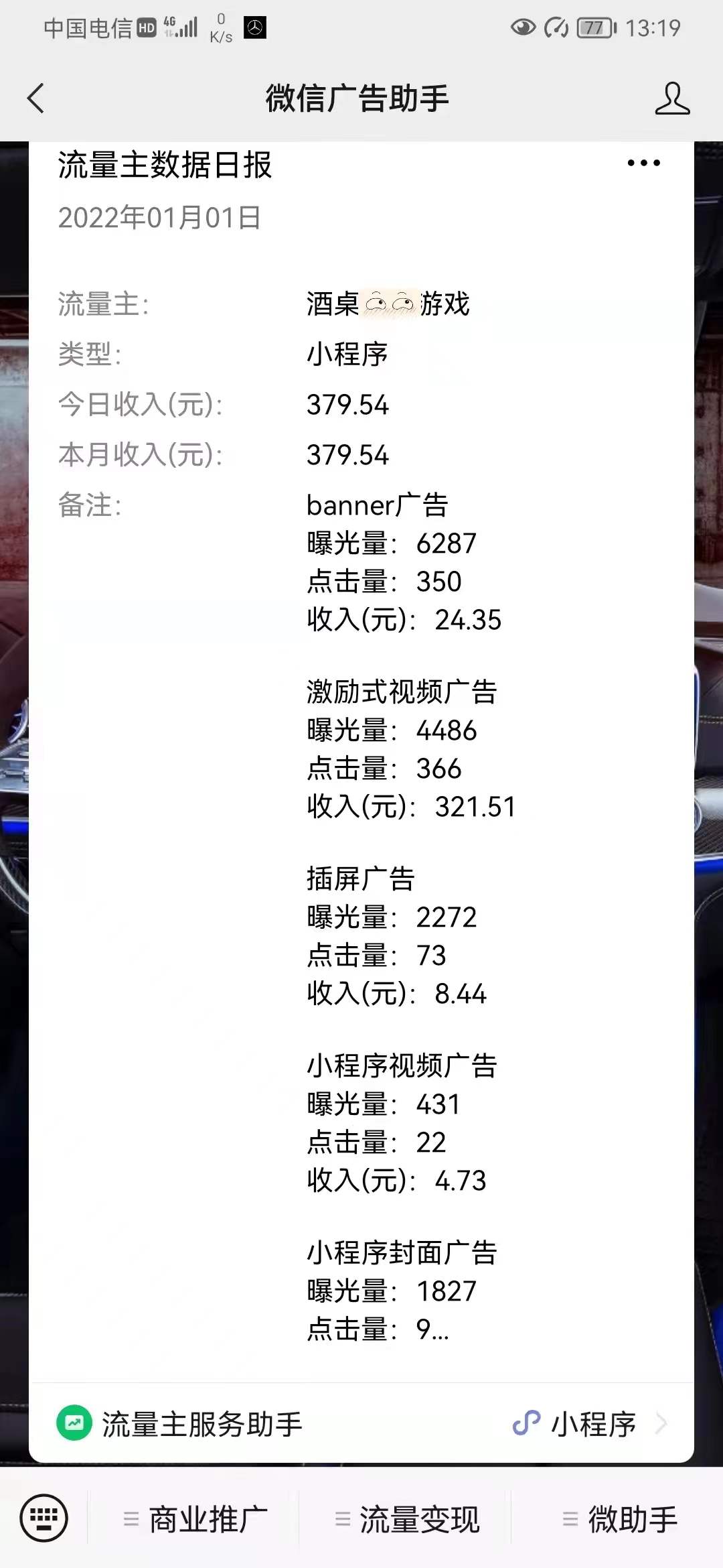 流量主支持多种广告方式的收益: